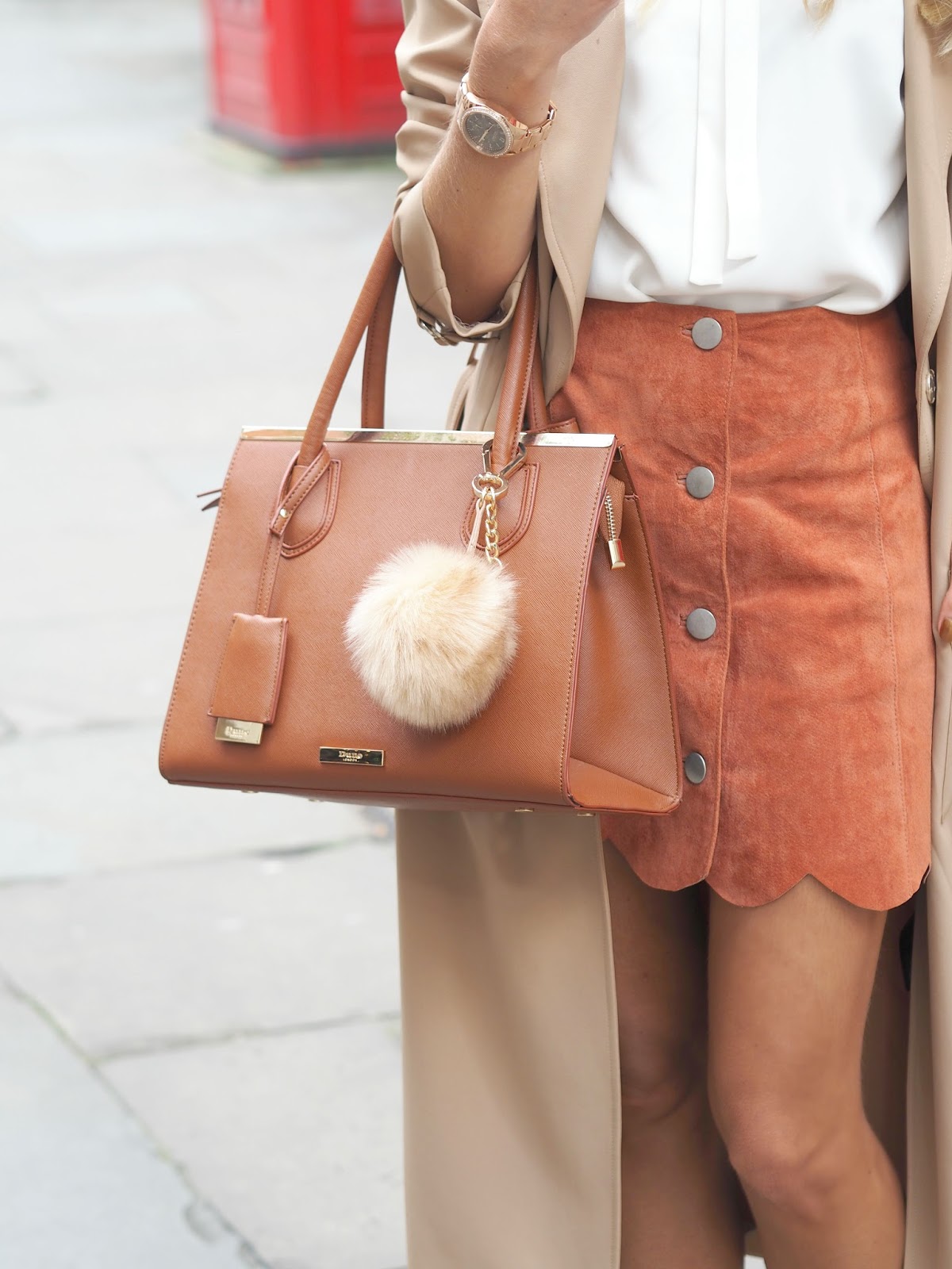 I'm also in love with this skirt, especially because of its under £50 price tag, but mostly because it's suede, and it's scalloped - aka my two favourite Autumn trends. I paired with a white bow-detail top to keep the look on a neutral spectrum, I must have about fifteen white blouses in my wardrobe, but somehow they seem to work with almost every #ootd, and this is my latest addition.